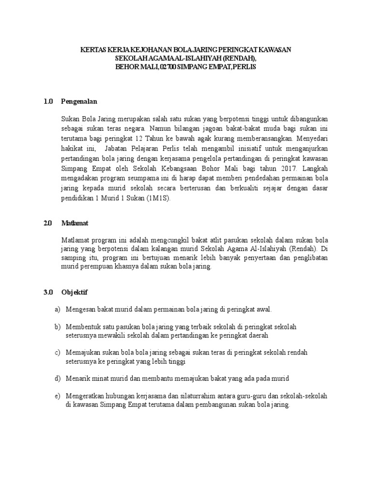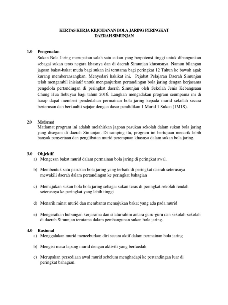 Doc Kertas Kerja Kejohanan Bola Jaring Eina Ku Aziz Academia Edu