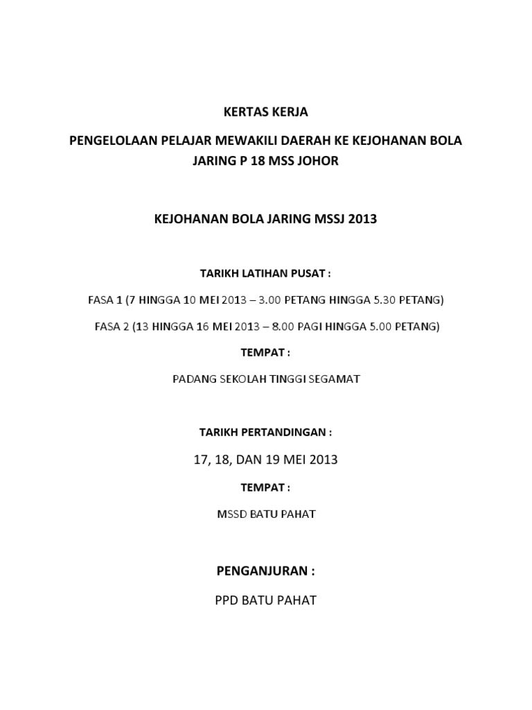 Kertas Kerja Pertandingan Bola Jaring Daerah