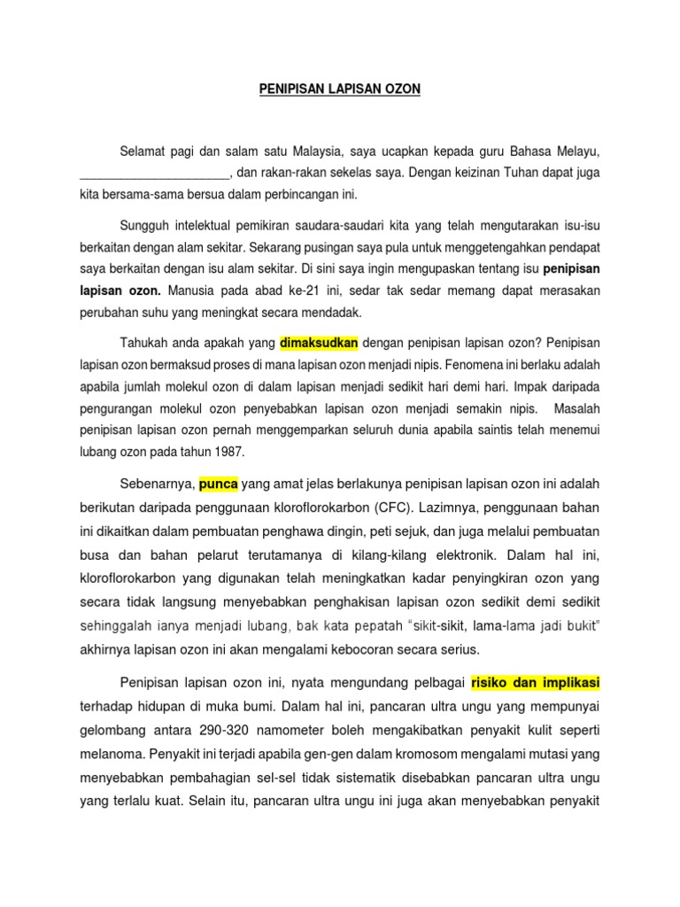 Lapisan Ozon Kesan Kemusnahan Terhadap Cuaca Dan Iklim Dunia