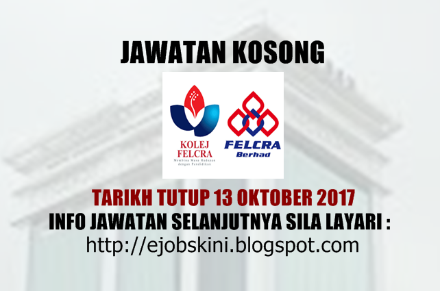 Jawatan Kosong Terkini Di Kolej Felcra 13 Oktober 2017