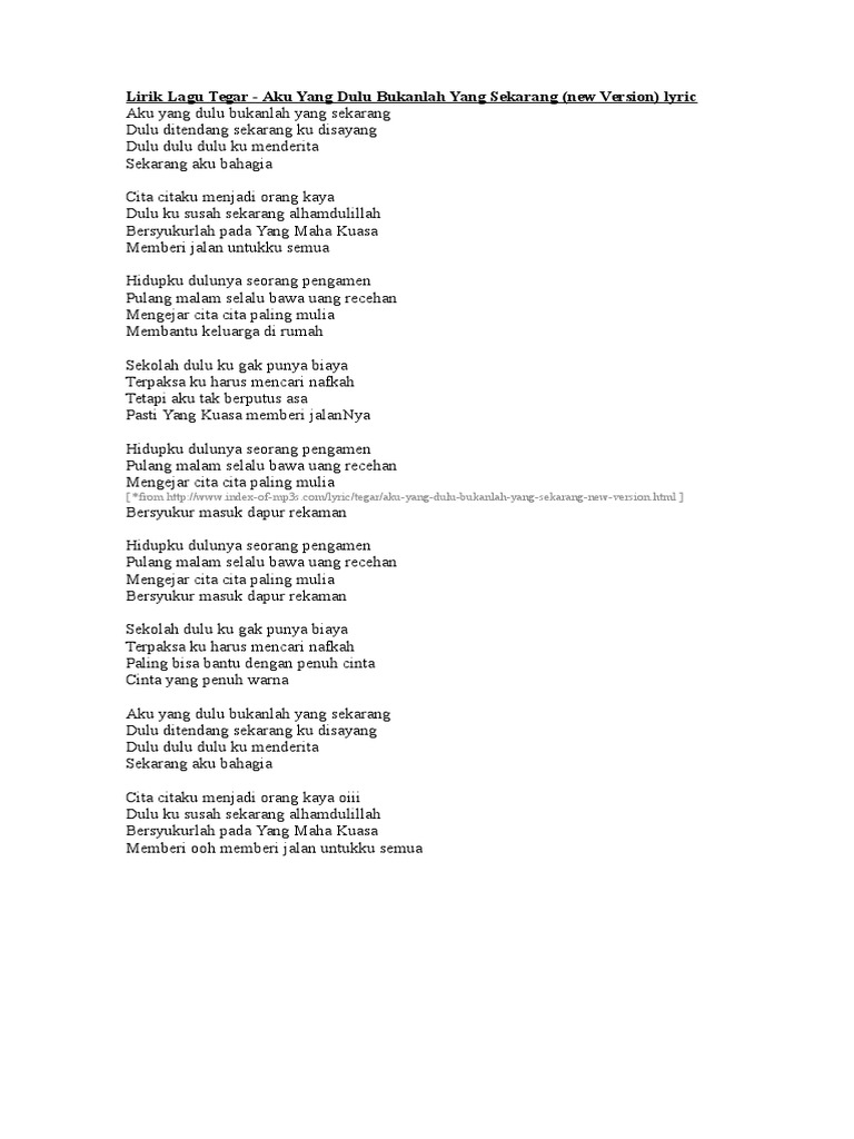 Tegar Aku Yang Dulu Bukanlah Yang Sekarang Lirik Youtube
