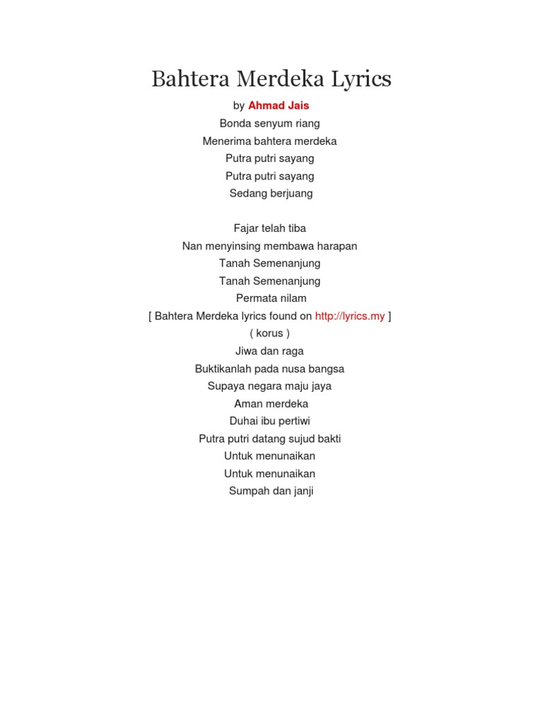 Lirik Lagu Bahtera Merdeka Melayu