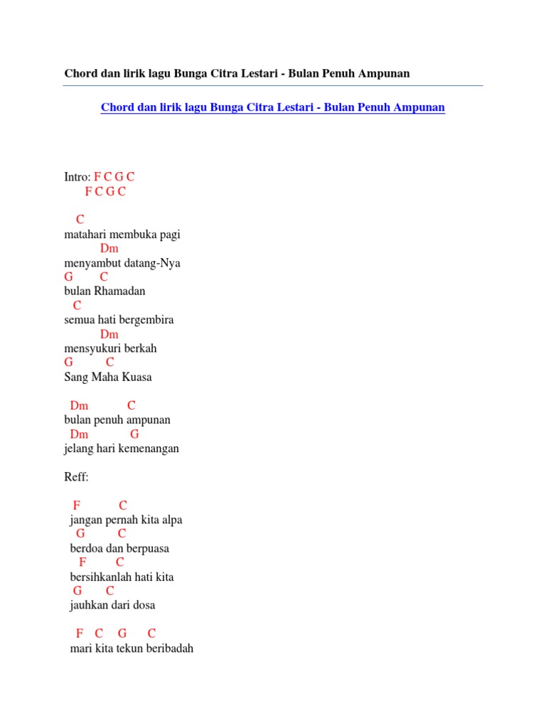 Chord Dan Lirik Lagu Bunga Citra Lestari Bulan Penuh Ampunan