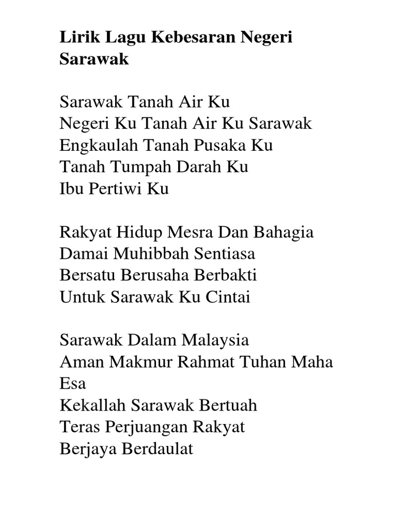 Lirik Lagu Negeri Sarawak Ibu Pertiwiku Docx Document