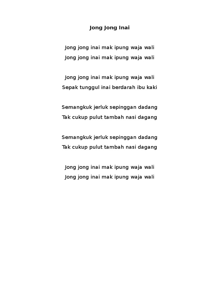 Lagu Rakyat Jong Jong Inai Docx Jong Jong Inai Jong Jong Inai Mak Ipong Waja Wali 2x Jong Jong Inai Mak Ipong Waja Wali Sepak Tunggul Inai Berdarah Course Hero