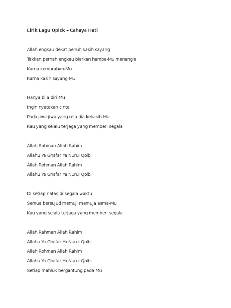 Lirik Lagu Opick Astaga