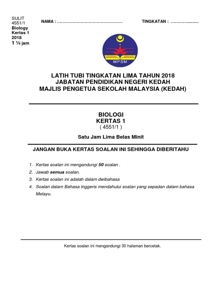 Latih Tubi Tingkatan Lima Tahun 2018 Jabatan Pendidikan Negeri Kedah Majlis Pengetua Sekolah Malaysia Kedah