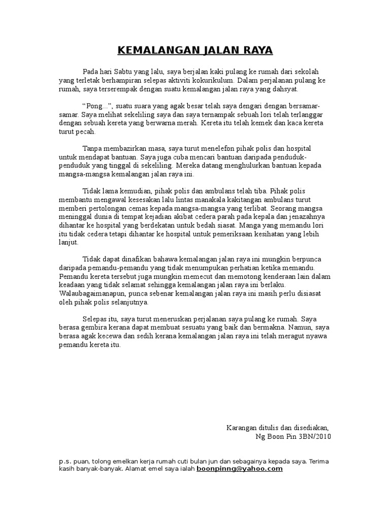 Mari Belajar Bahasa Melayu Karangan Ulasan Punca Kemalangan Jalan Raya