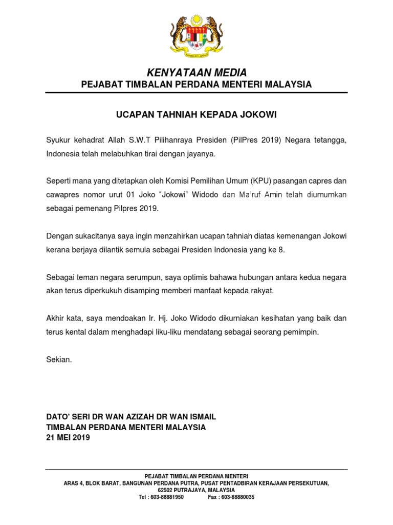 Kenyataan Media Pejabat Timbalan Perdana Menteri Malaysia